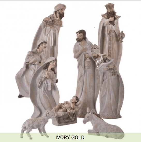 Nativity Set, Whitewash with Gold Trim, 7-18″